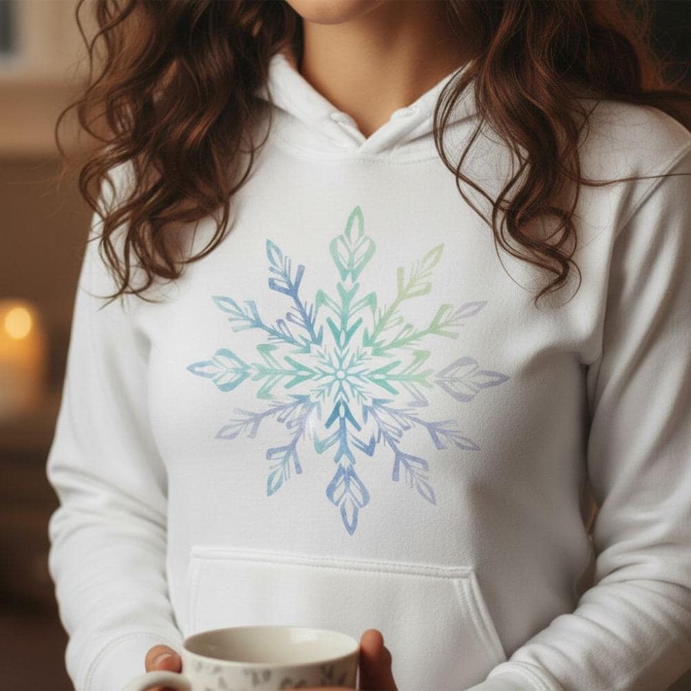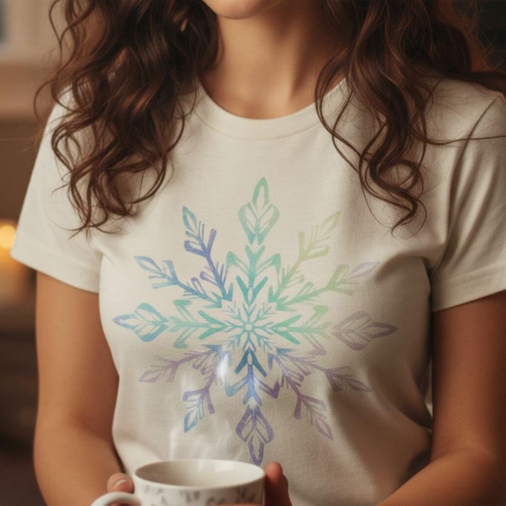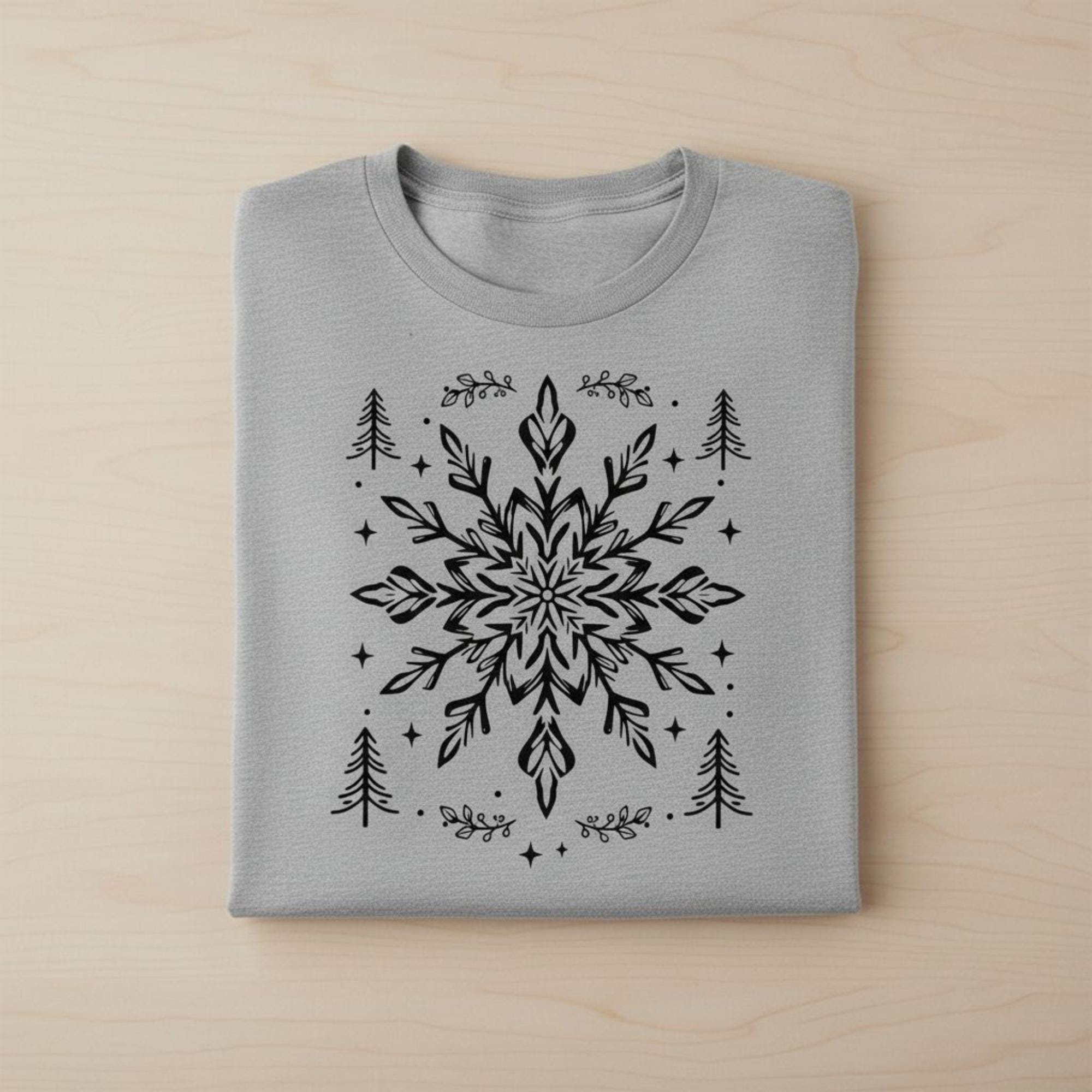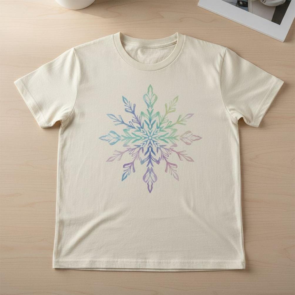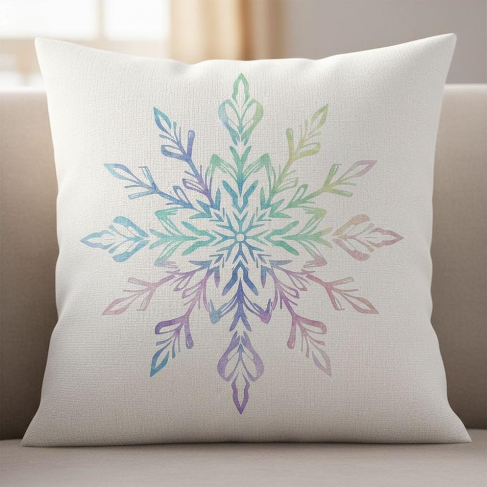 This bundle features both a distressed woodcut Snowflake SVG, (in two Versions, one with border), as well as a Watercolor Snowflake PNG for dye sublimation printing (300dpi).
