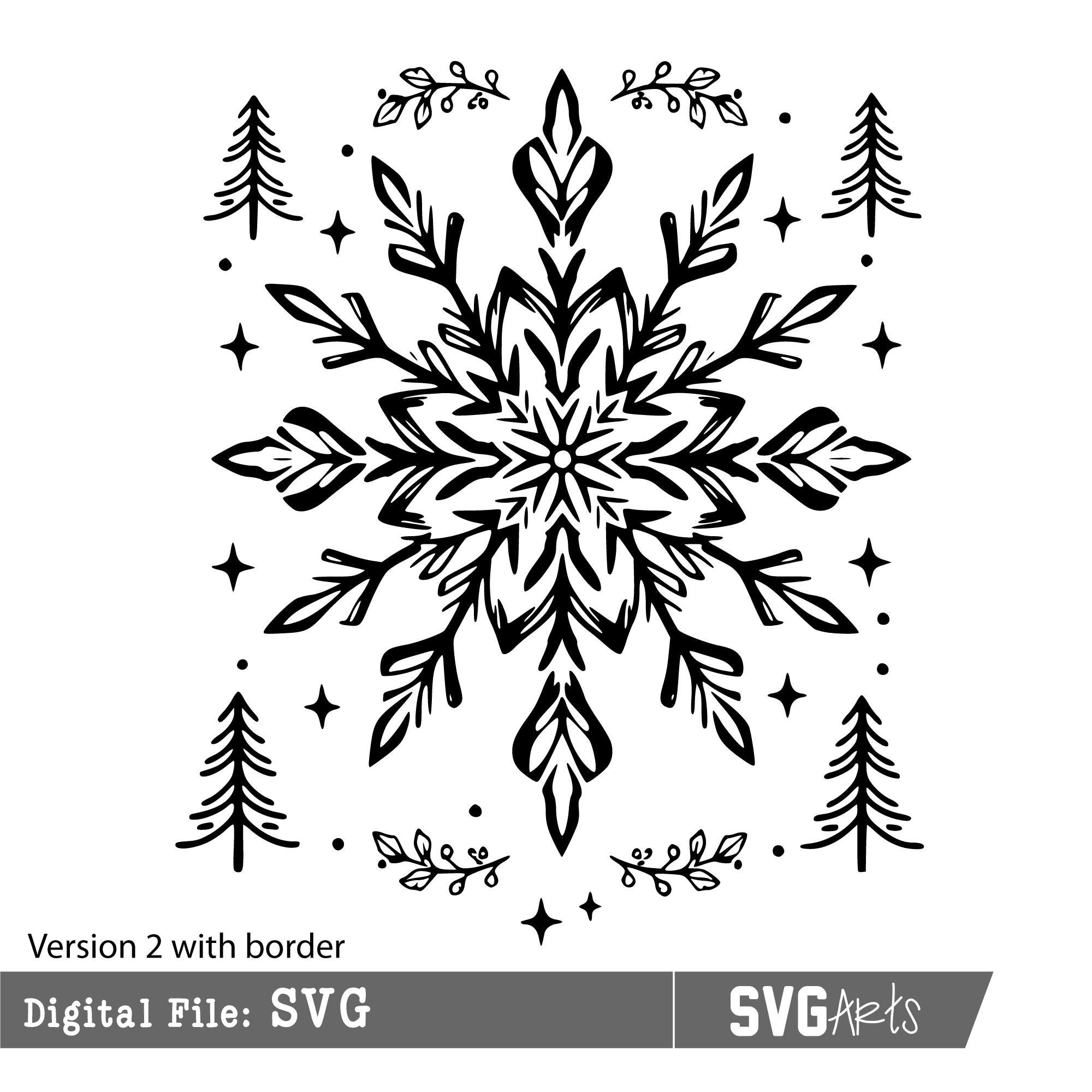 1 Woodcut Snowflake with border design SVG file