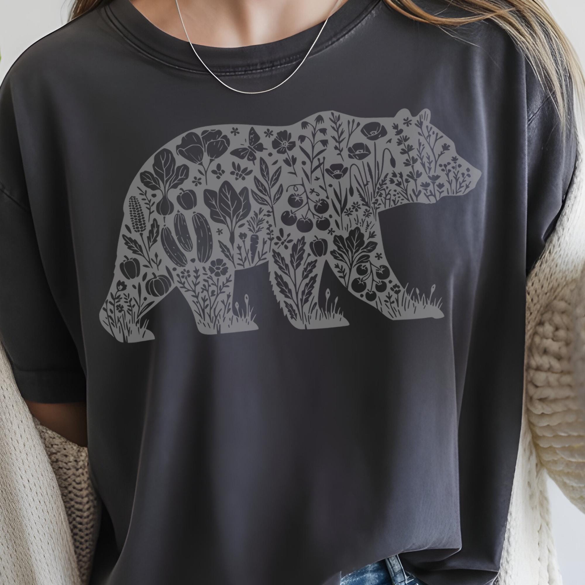 Garden inspired bear SVG and PNG works wonderfully for T-shirts, totes, signs, anywhere you would like to bring the garden atmosphere.