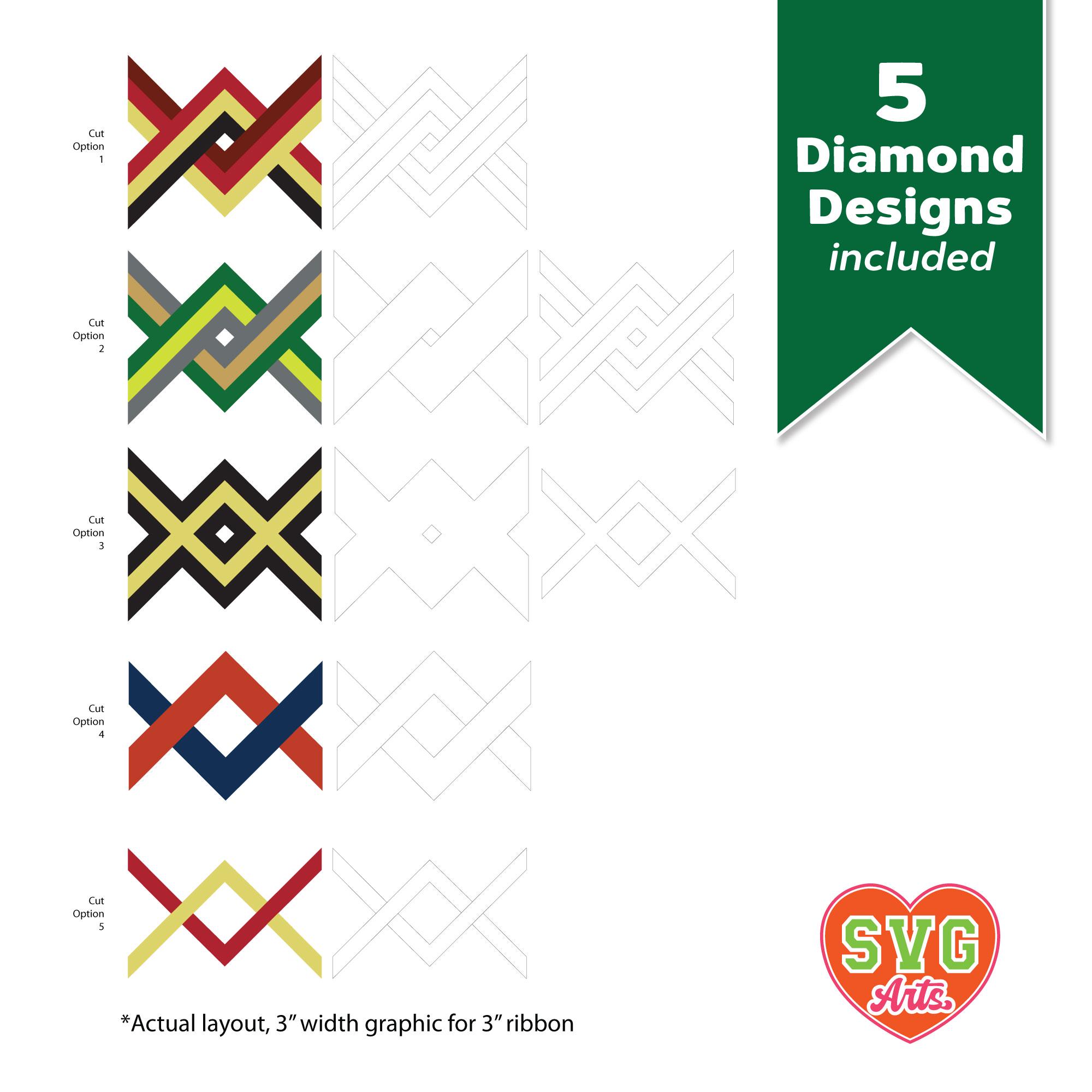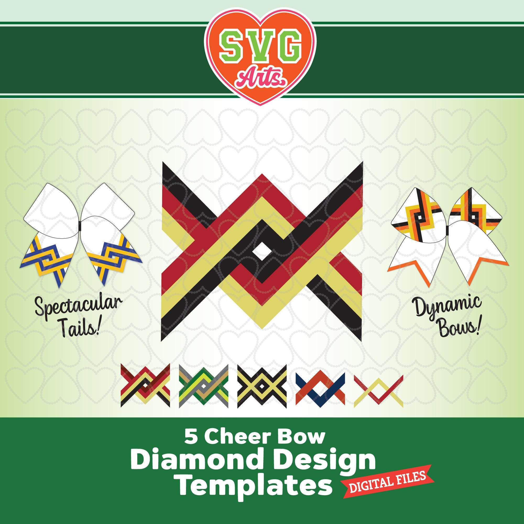 Diamond Design SVG Cheer Bow Tail Templates (Bundle of 5) for Vinyl or Sublimation 3 inch ribbon