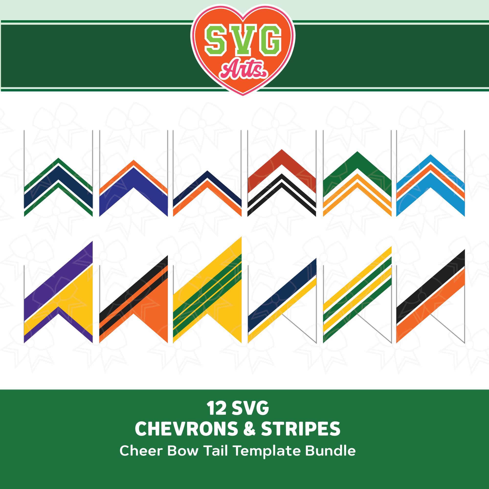 Chevron and Stripes SVG Cheer Bow Tail Templates (Bundle of 12) for Vinyl or Sublimation 3 inch ribbon