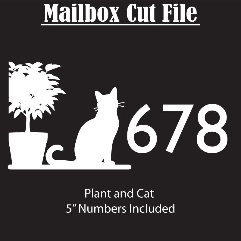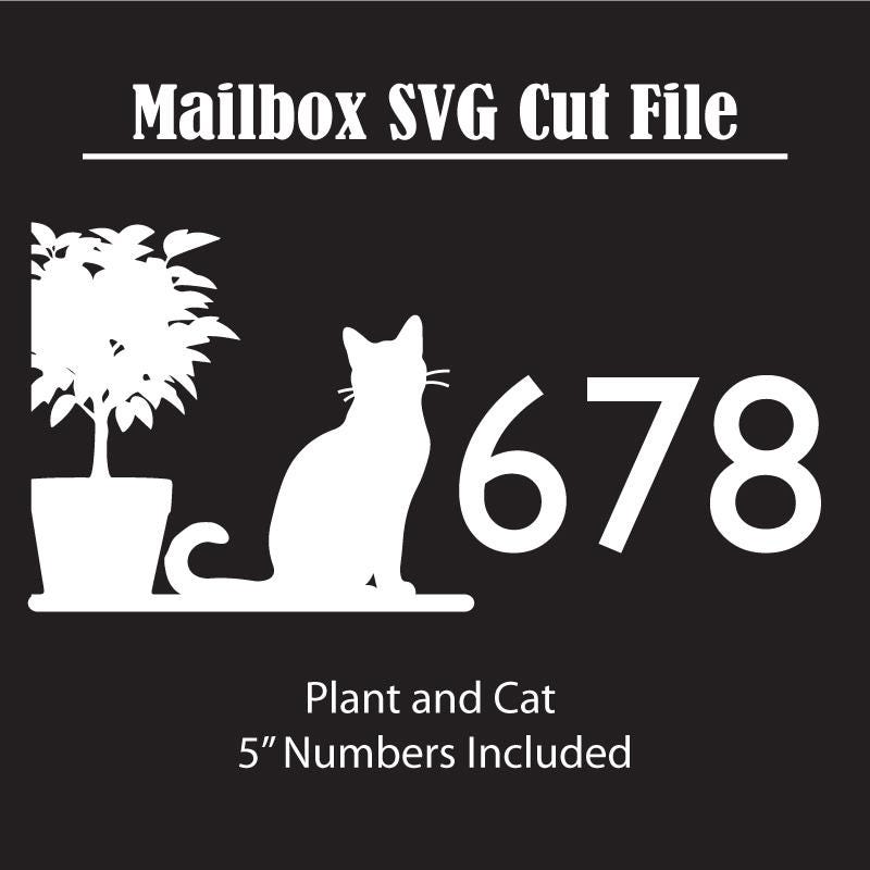 Mailbox street address digital cut files. Add some personality to your mailbox with this stylish Cat and Plant mailbox cut file, includes 5" street numbers, perfect for use with your digital cutting machines. Create your own vinyl transfers for your mailbox, or even use to create any type of signage that you would like to display street address on.