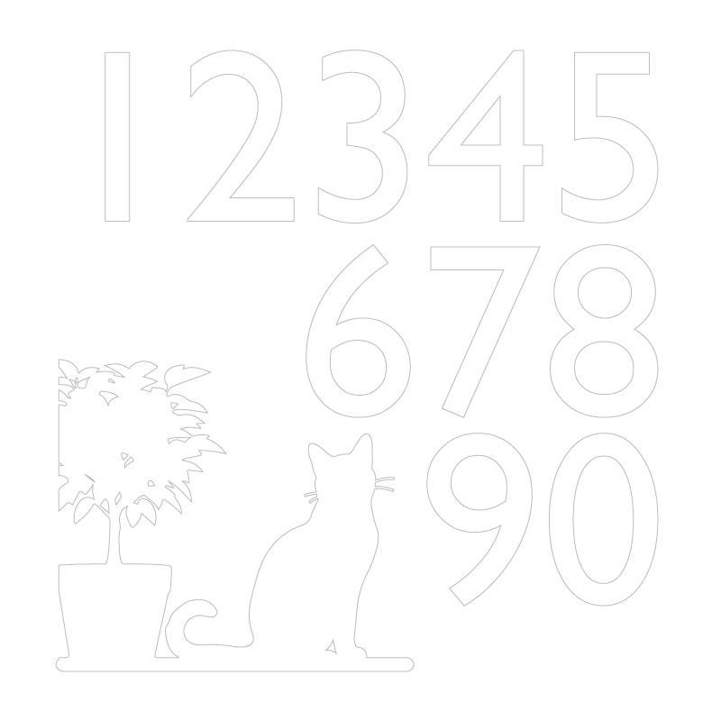 1 SVG file in 12" x 12" area contain the presized 5" numbers 0-9, and the Cat and Plant graphic.