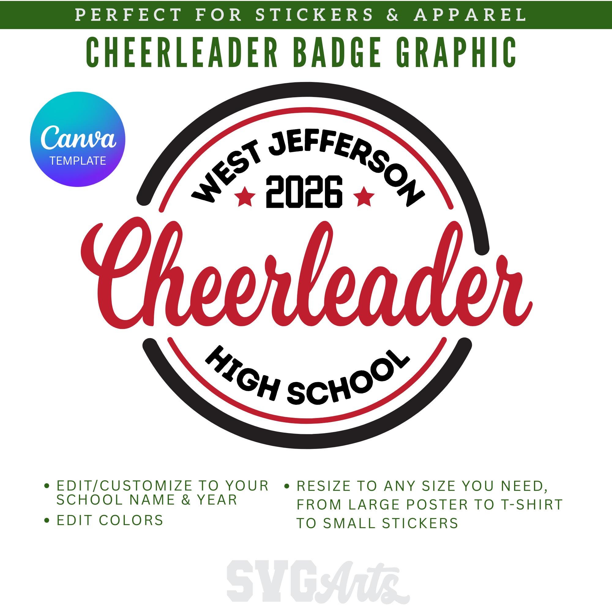 Cheerleader Circle Canva Template | Editable School Name, Year, and Colors (Digital File)
