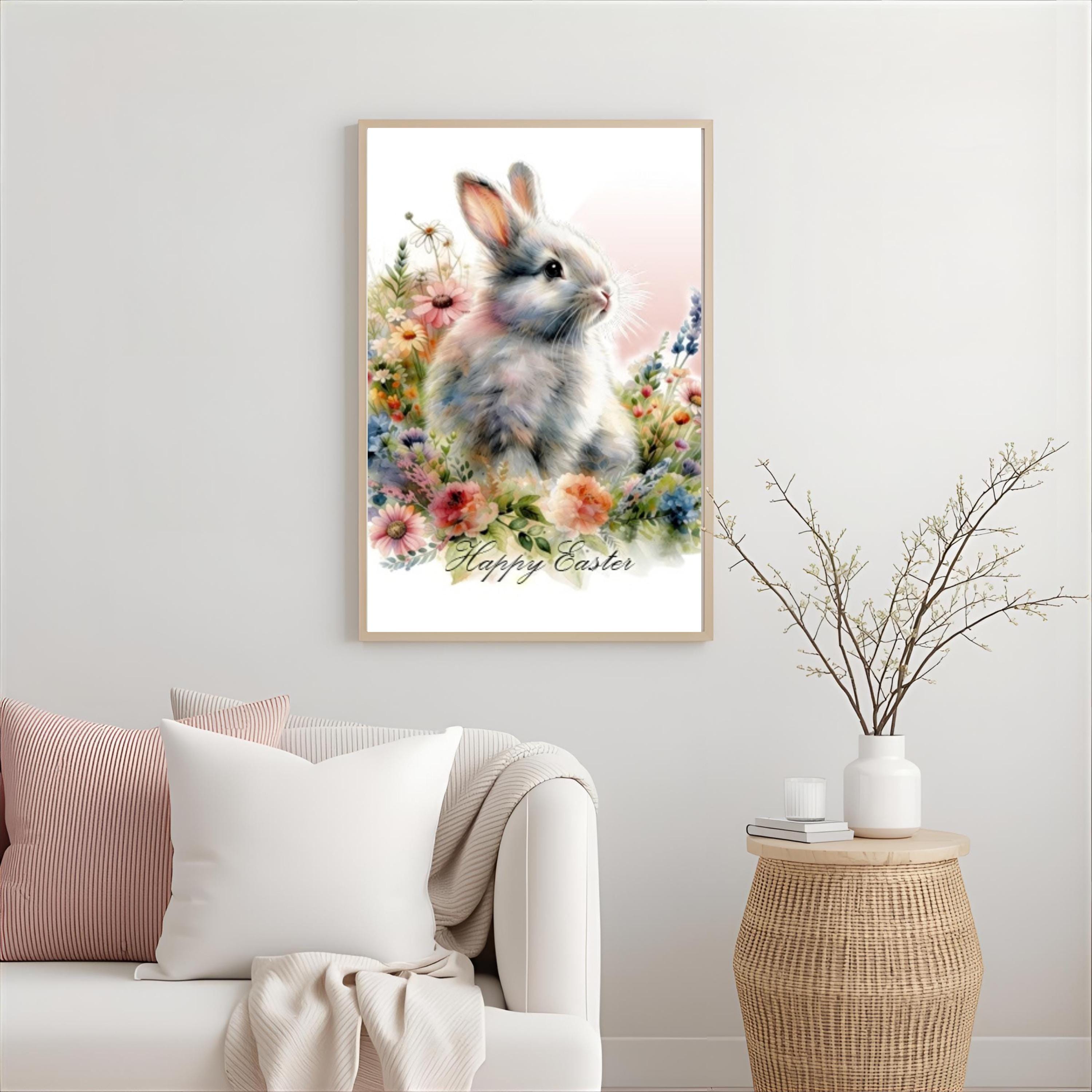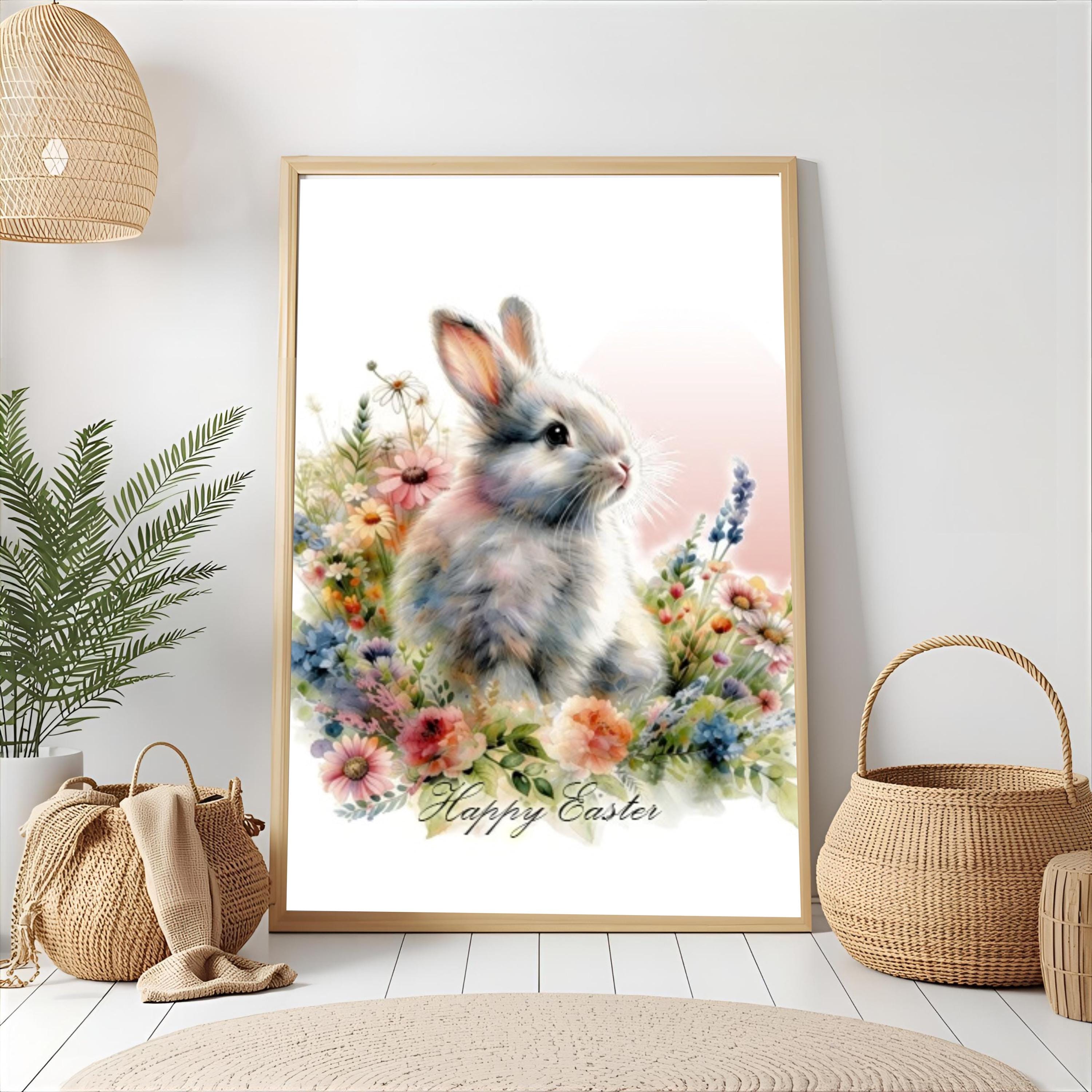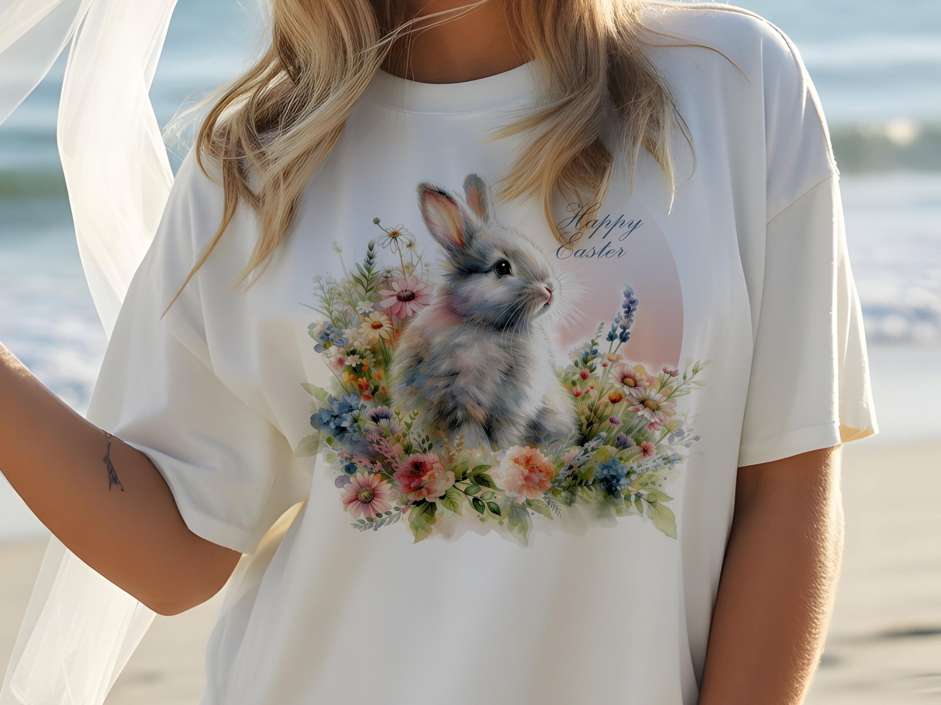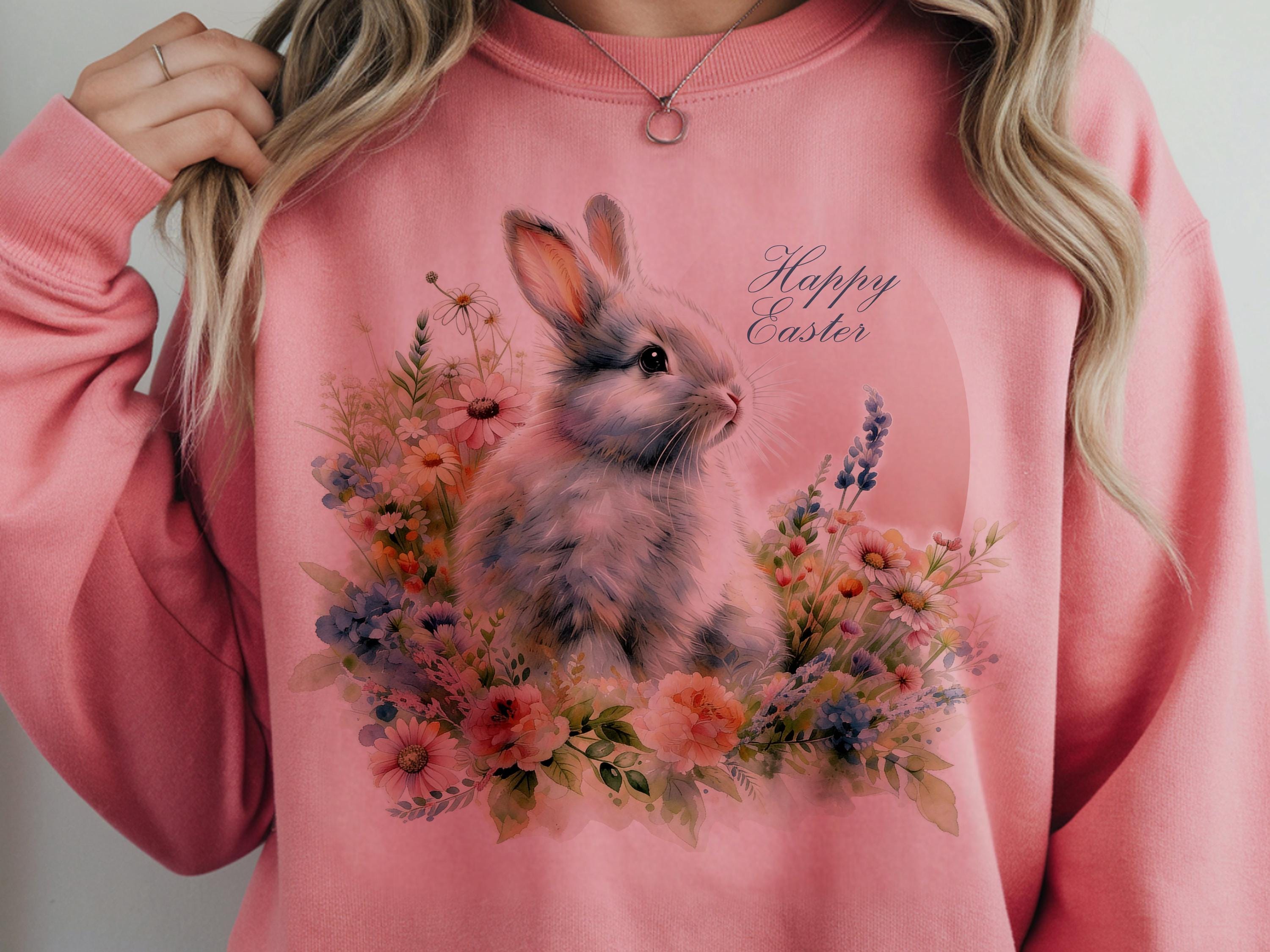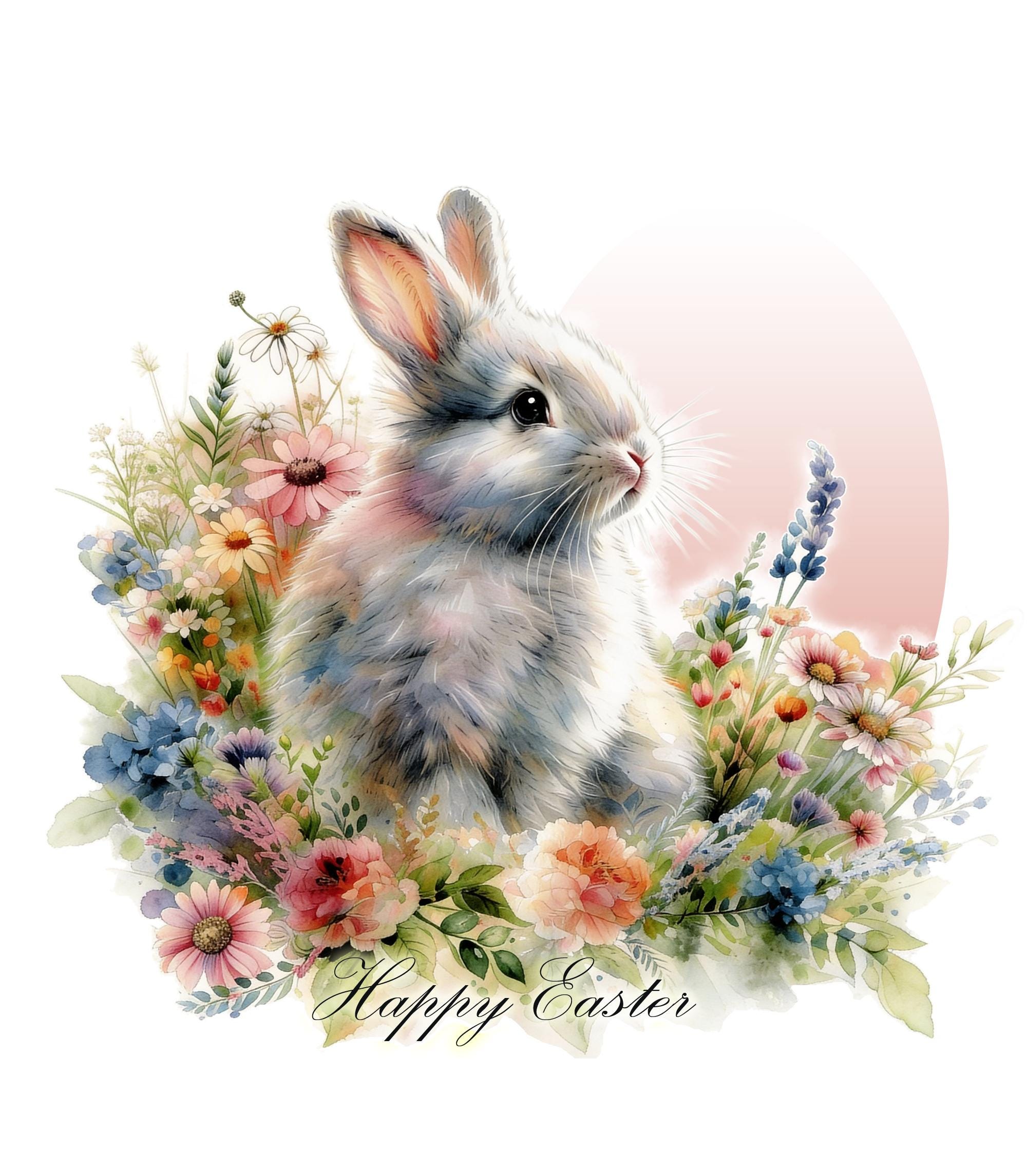 Happy Easter Bunny PNG | Watercolor Flowers Spring Bunny Designs