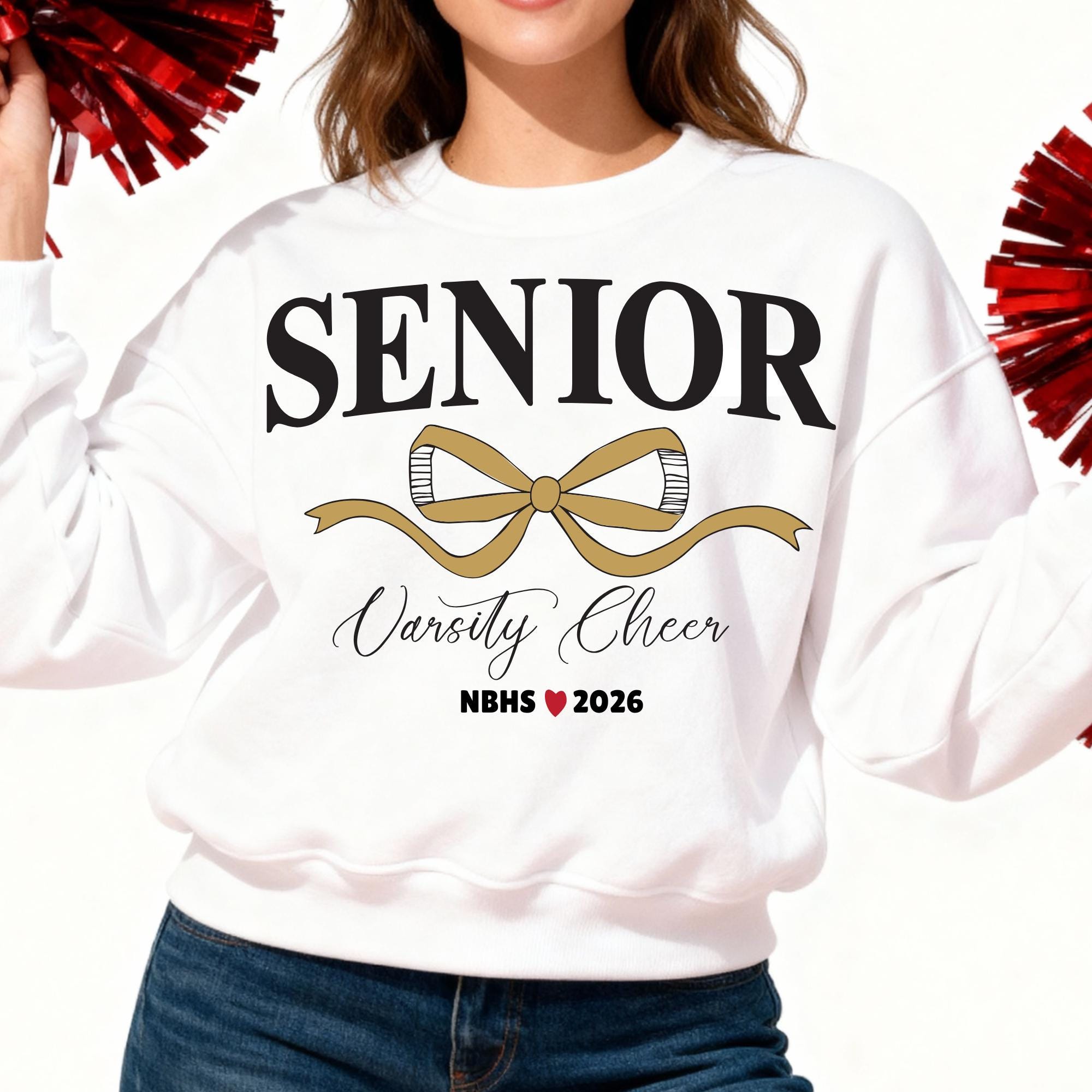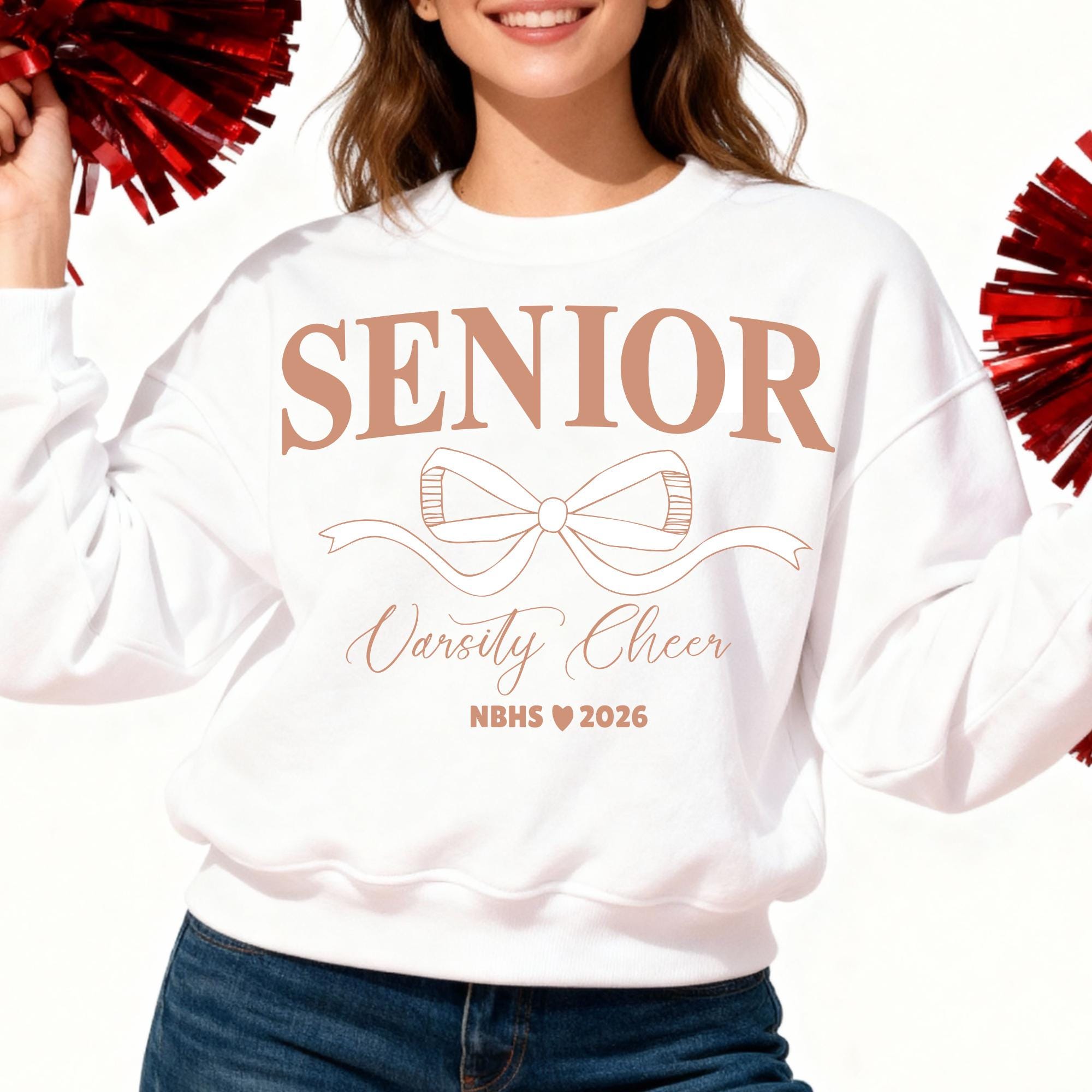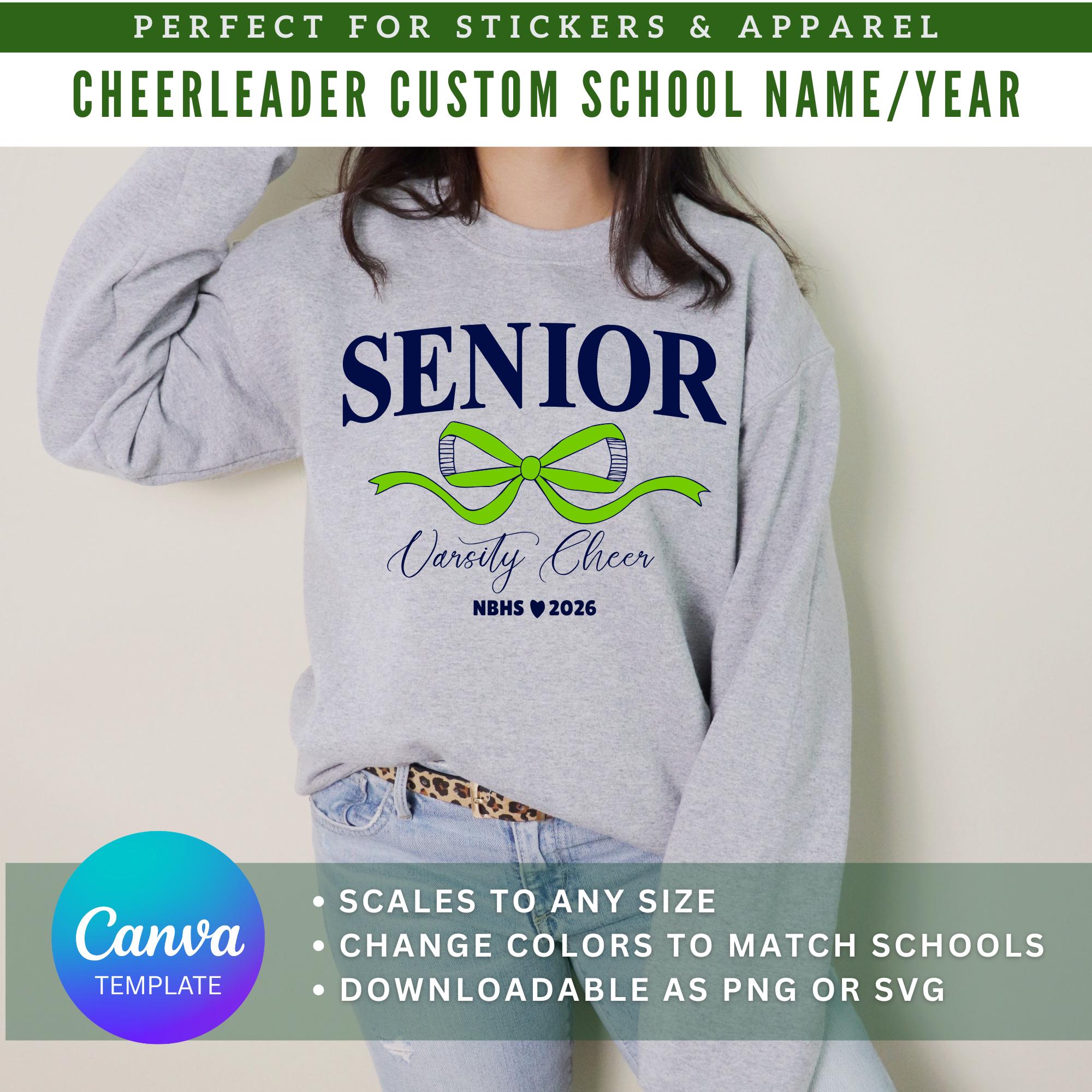 Senior Varsity Cheerleader SVG | Coquette Bow Canva Template | Editable Colors, School Name, and Year (Digital File)