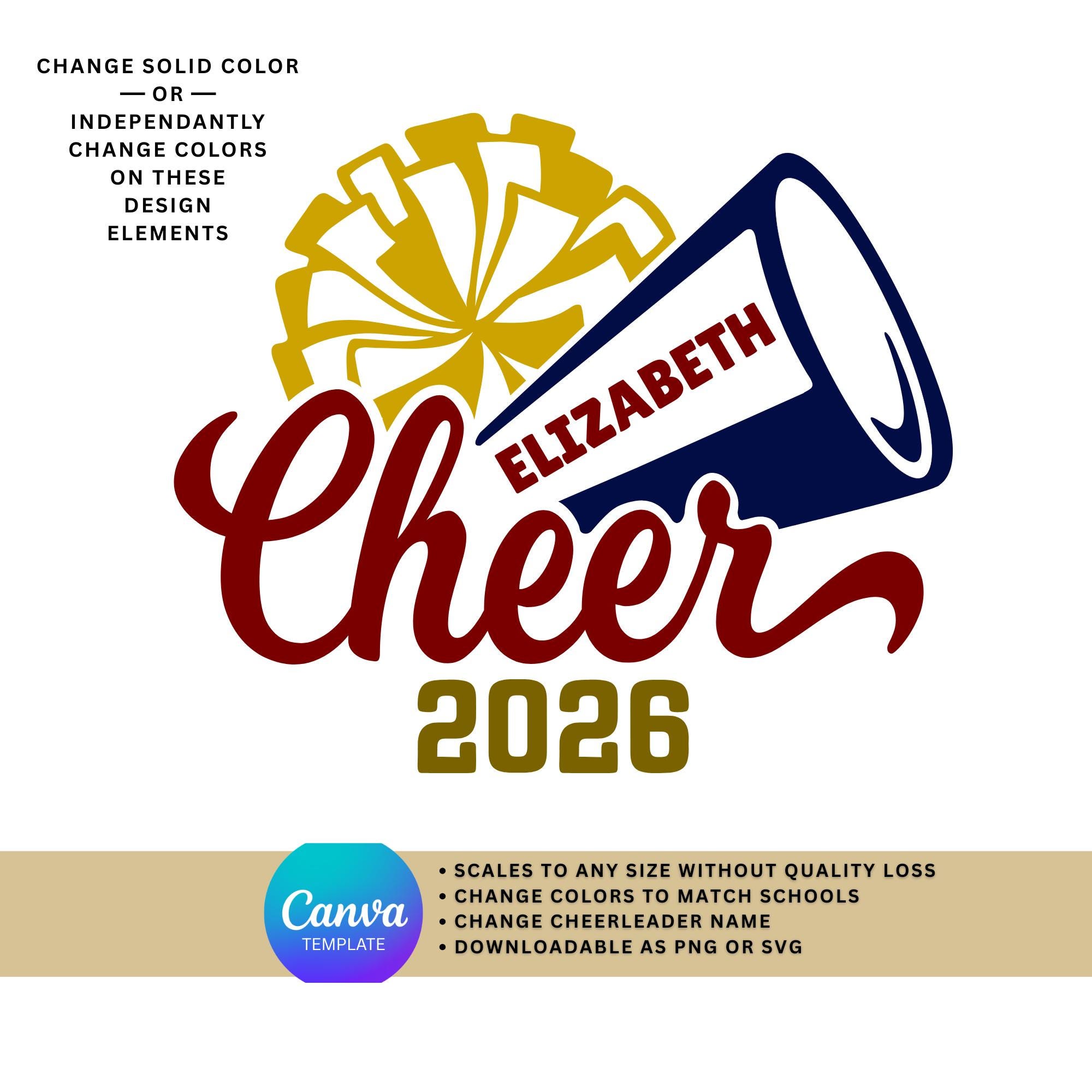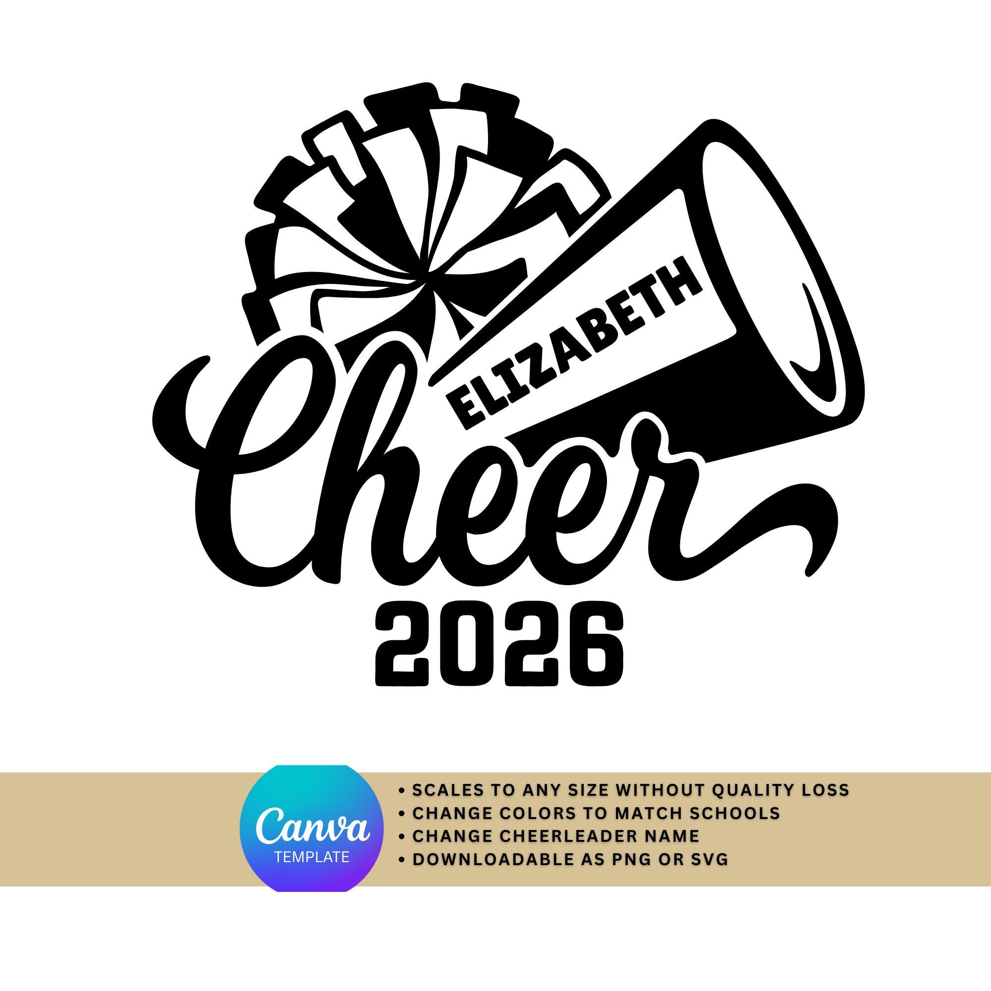 Cheer Canva Template | Vintage Cheer Camp SVG | Editable Name, Colors, 2026 (Digital File)