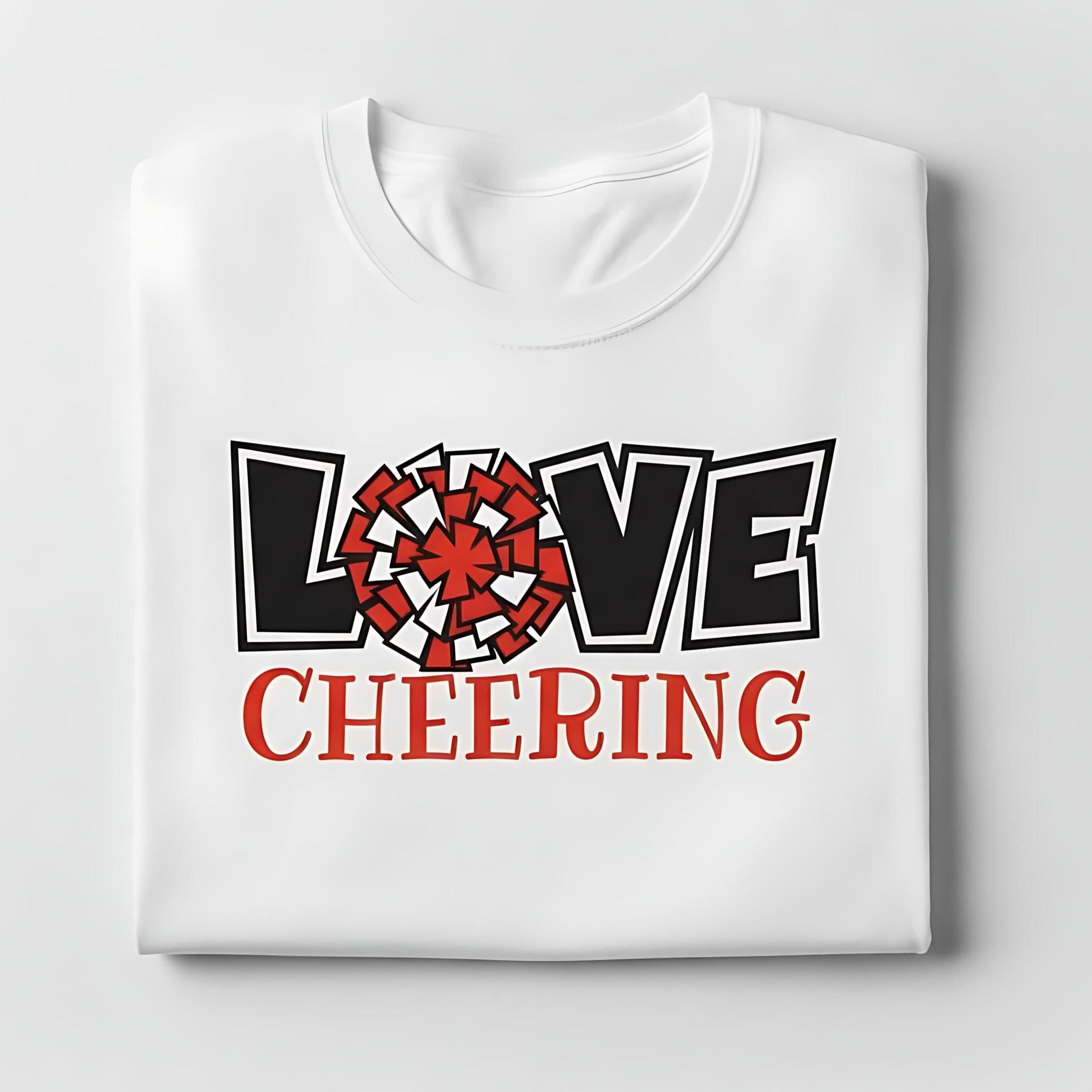 LOVE CHEERING graphic is perfect for cheerleaders to show their spirit, embellish sports bags, notebooks, phone cases, or create your own t-shirts, jerseys, and banners.