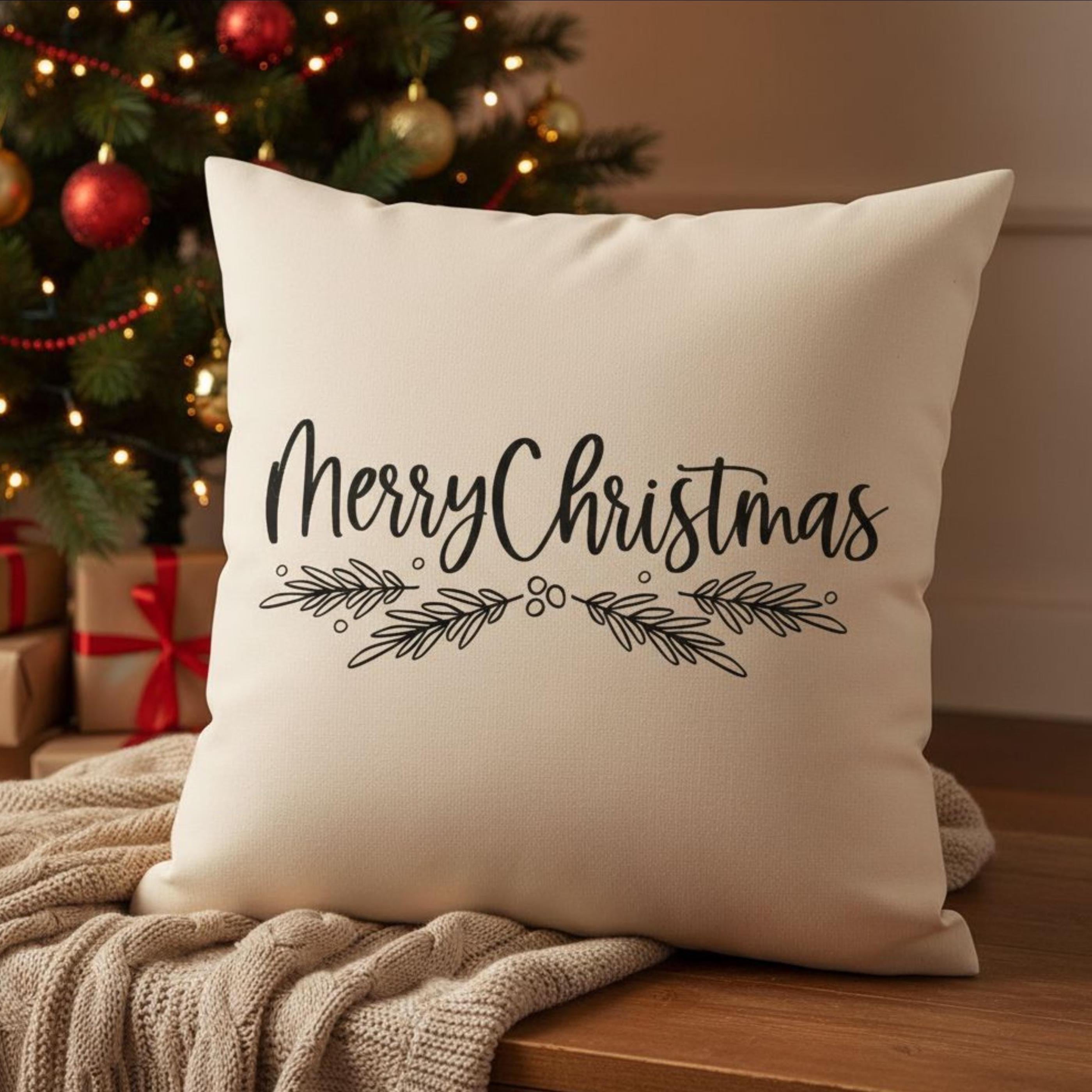 Merry Christmas SVG perfect for creating stylish and festive Front Door Christmas Sign, Christmas Pillows, Christmas t-shirts, hoodies, cup decals, totes, and more. You also receive a bonus high resolution PNG colored version, works well for dye sublimation printing.